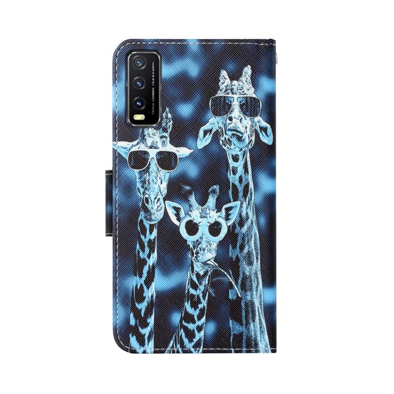Θήκη τηλεφώνου από δέρμα με έγχρωμο σχέδιο για vivo Y20 / Y12s (Καμηλοπαρδάλεις)