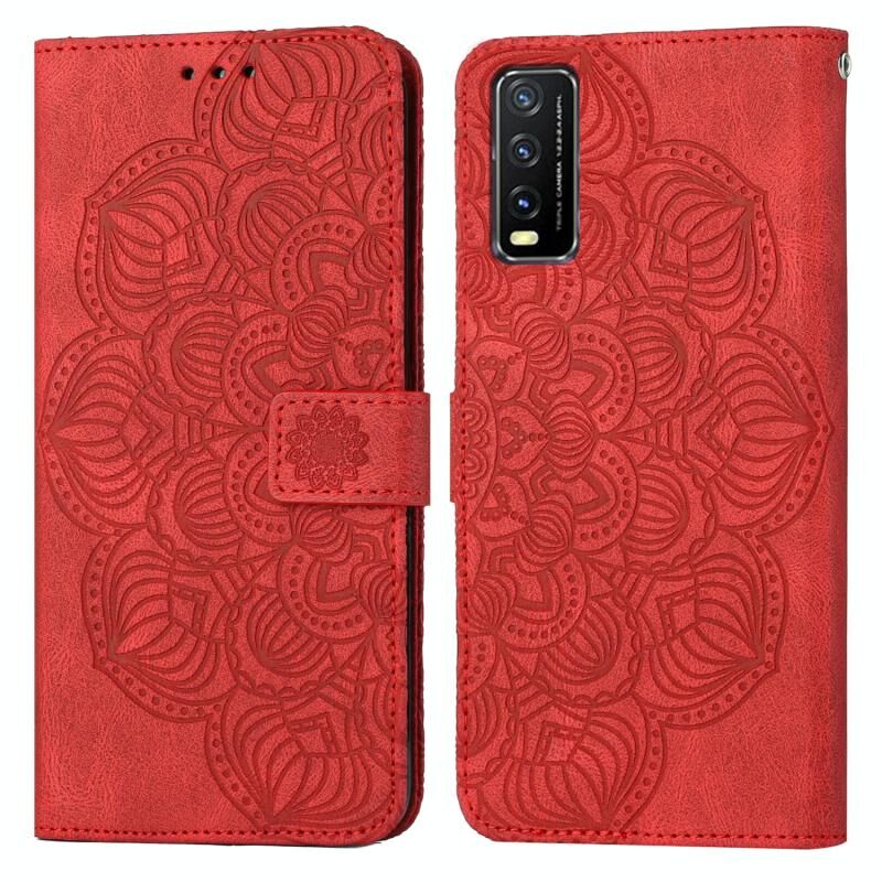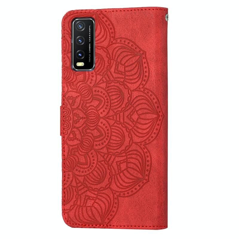 Για το vivo Y20 / Y12S Mandala ανάγλυφο Flip δερμάτινη θήκη τηλεφώνου (κόκκινο)