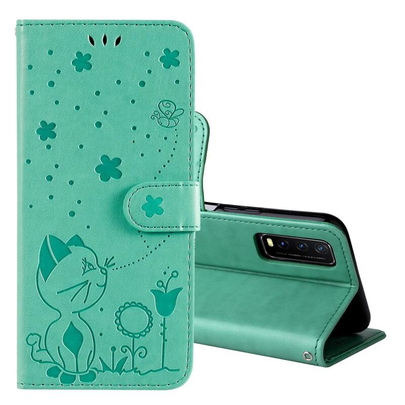 Για το vivo Y20 / Y20a / Y20s Cat Bee ανάγλυφο μοτίβο Shockproof οριζόντια Flip δερμάτινη θήκη με θήκη & υποδοχές για κάρτες & πορτοφόλι (πράσινο)