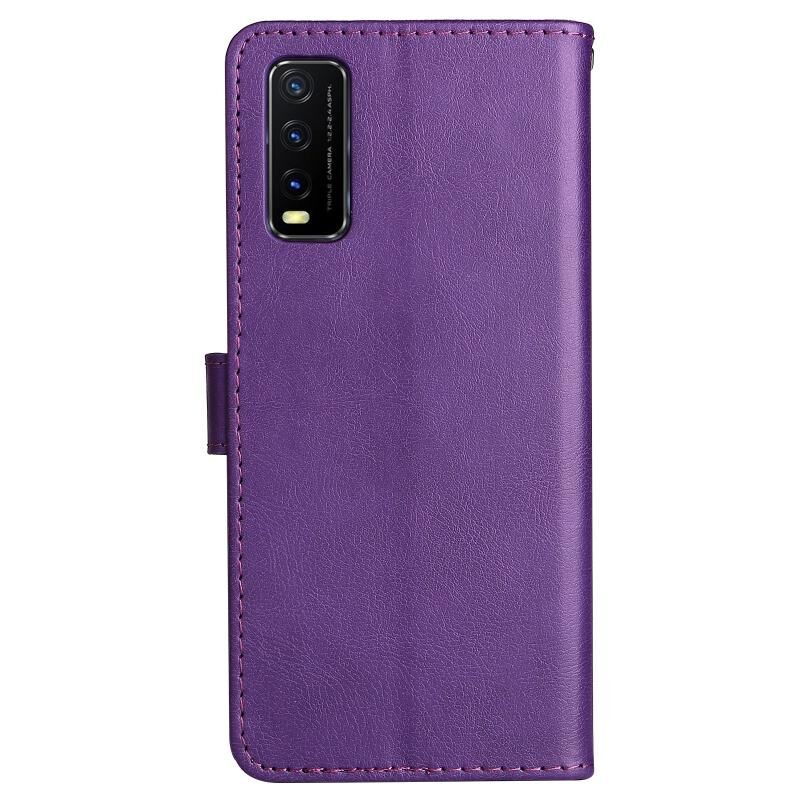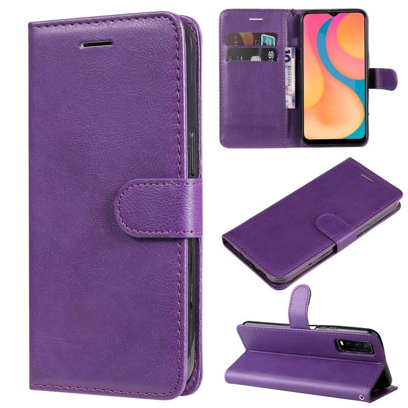 Για το vivo Y20 / Y20a / Y20s Καθαρό χρώμα οριζόντια Flip δερμάτινη θήκη με θήκη & υποδοχές για κάρτες & πορτοφόλι & κορδόνι (μωβ)