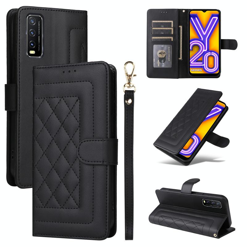 For vivo Y20 / Y20i Diamond Lattice Leather Flip Phone Case(Black)