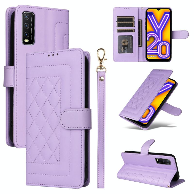 For vivo Y20 / Y20i Diamond Lattice Leather Flip Phone Case(Light Purple)