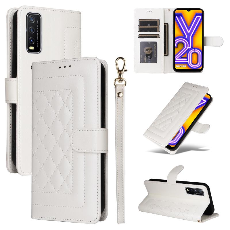 For vivo Y20 / Y20i Diamond Lattice Leather Flip Phone Case(White)