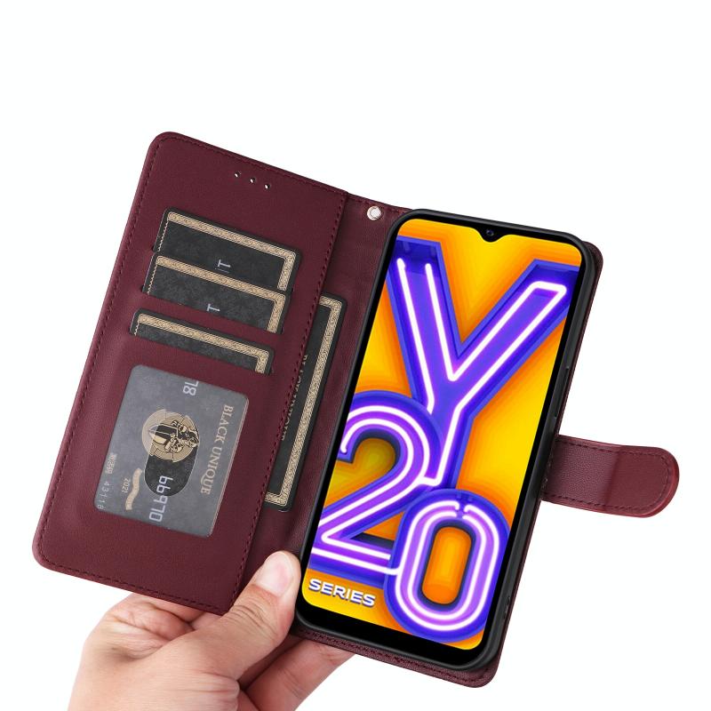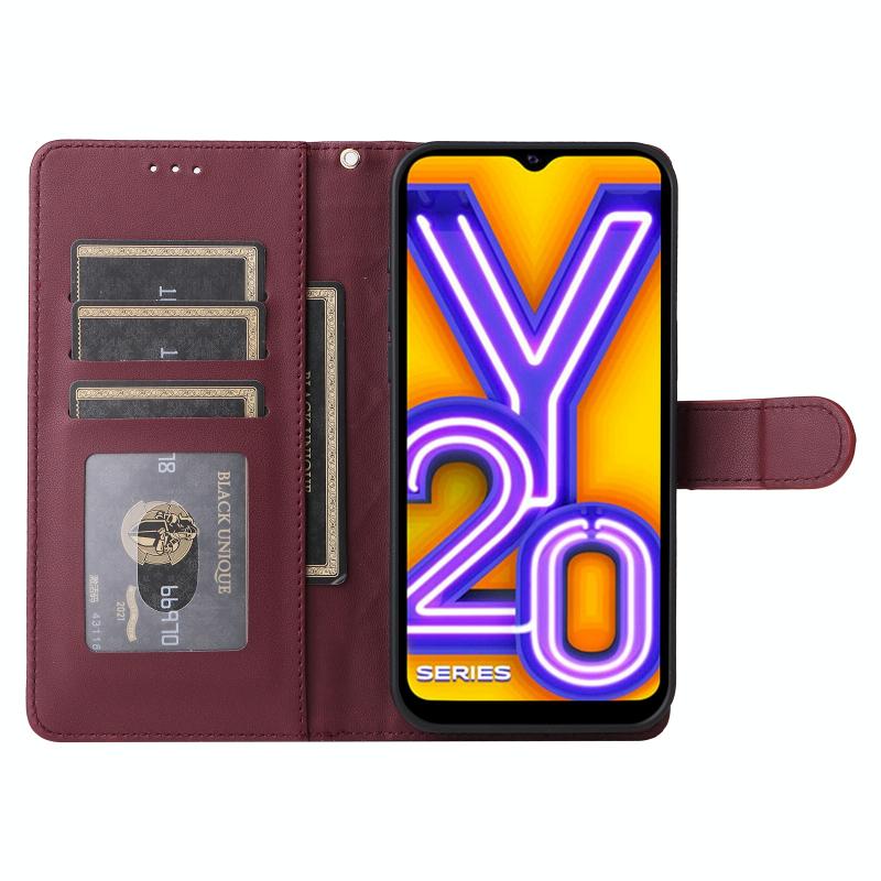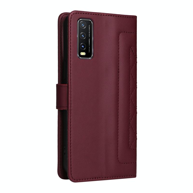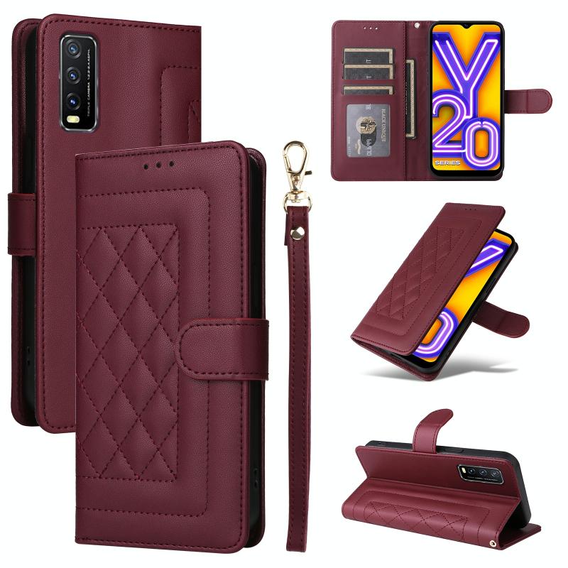 For vivo Y20 / Y20i Diamond Lattice Leather Flip Phone Case(Wine Red)