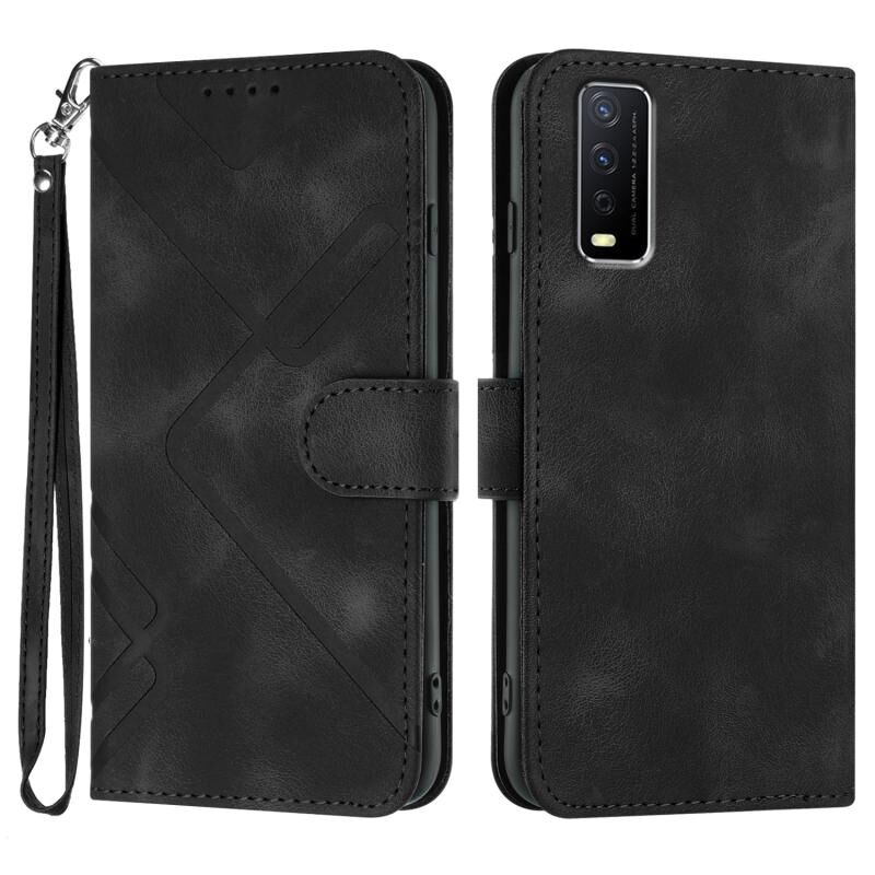 Για vivo Y20/Y20i/Y11s/Y12s/iQOO U1x Line Pattern Skin Feel Leather Phone Case (Μαύρο)