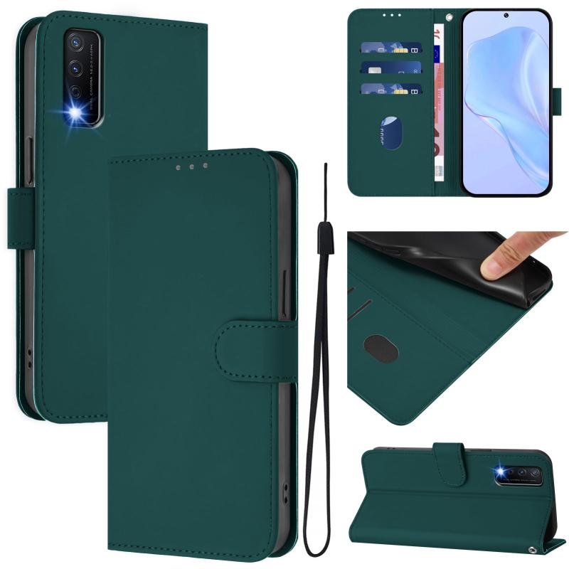 For vivo Y20 / Y20i / Y20S / Y11S Skin Feel Solid Color Leather Phone Case with Lanyard(Dark Green)