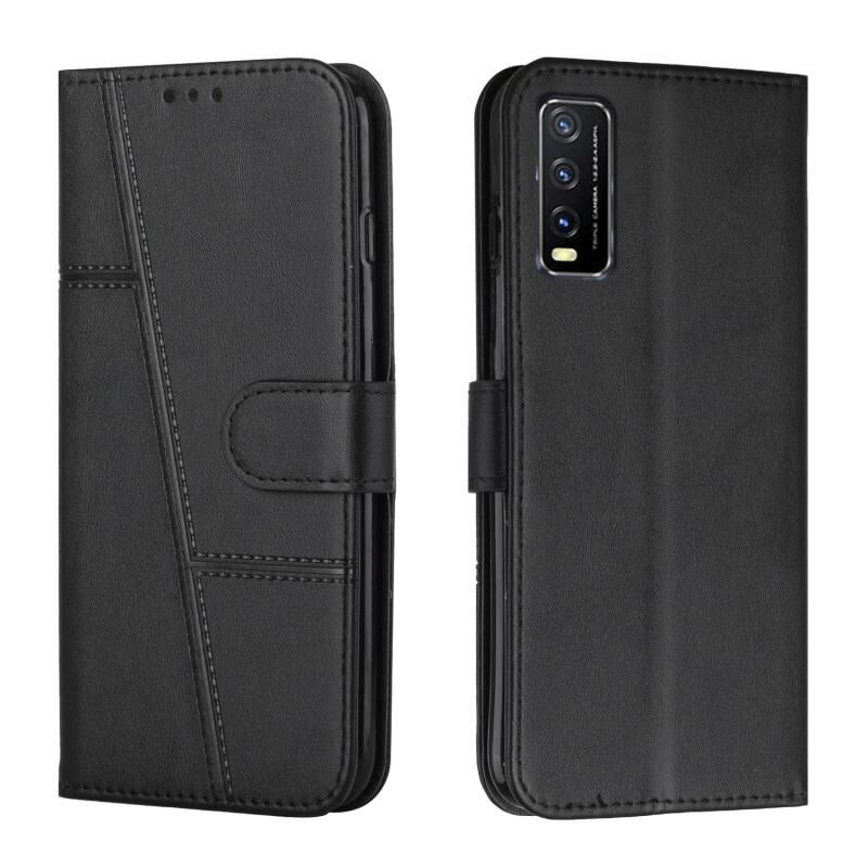 Για vivo Y20/Y20i/Y30 CN Version/Y20s/Y20 2021/Y12s Overseas Version/Y11s Overseas Version/Y20G/Y30G/iQOO U1x/Y20a Overseas Version/Y3s Stitching Calf Texture Buckle Leather Phone Case (Μαύρο)