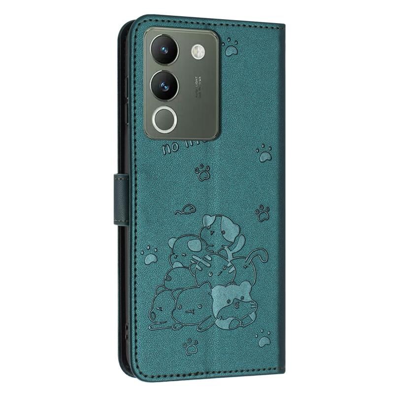 Θήκη δέρματος τηλεφώνου με ανάγλυφο γατάκι και λουρί για vivo Y200 5G Global (Μωβ)