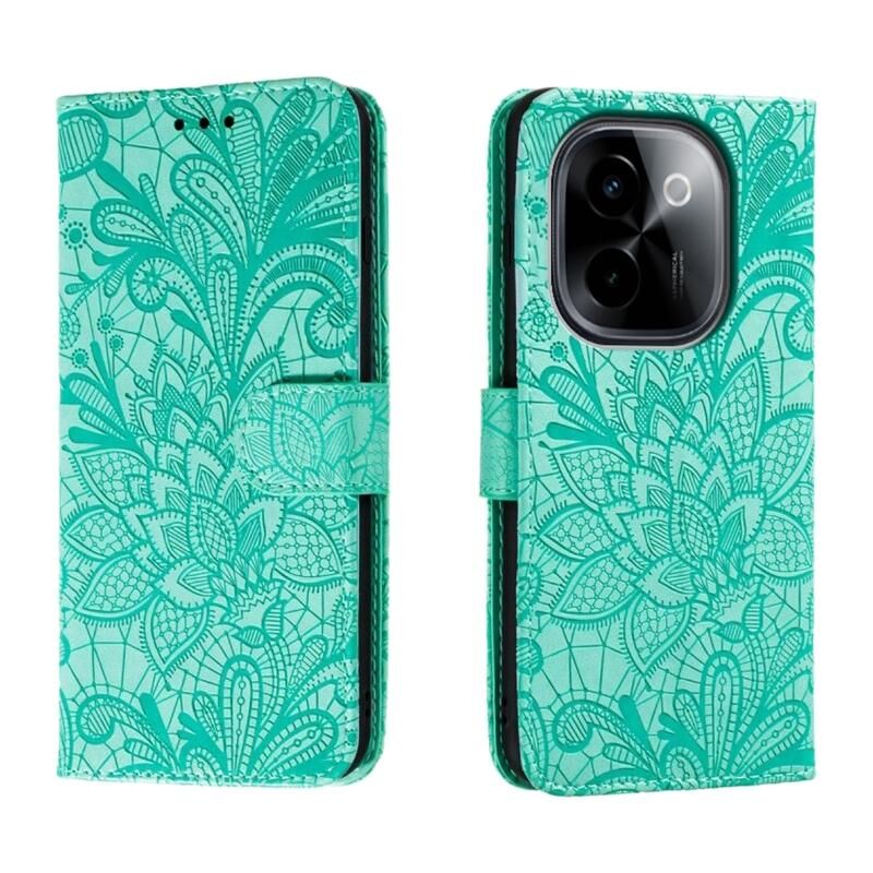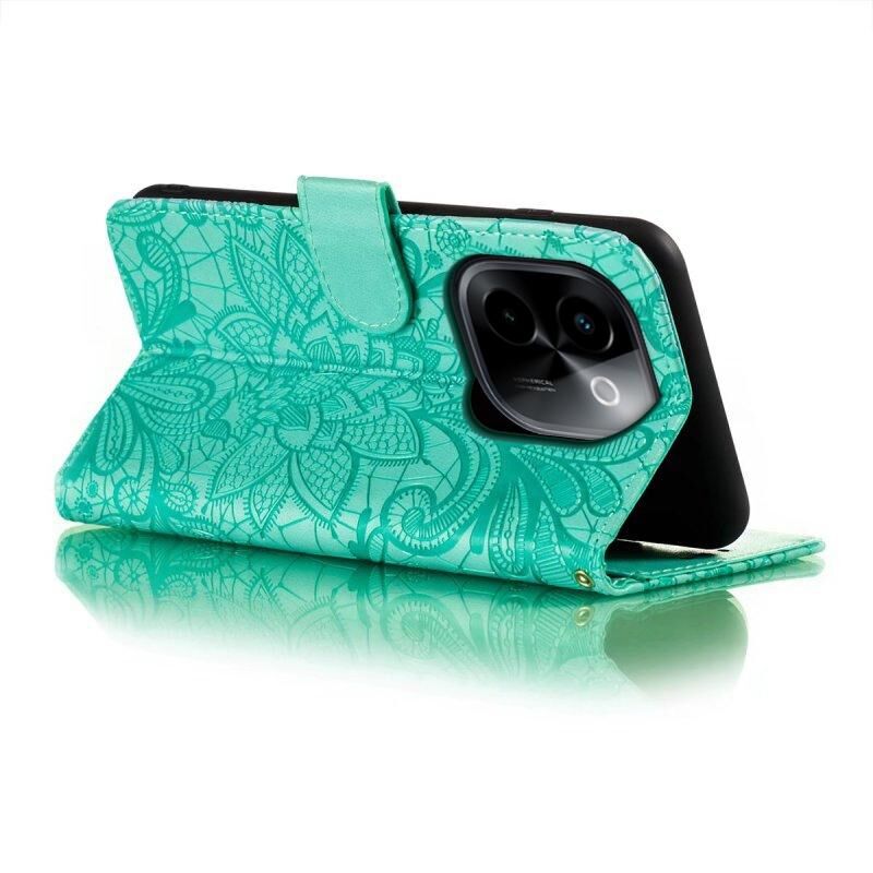 Για το vivo Y200 5G Lace Flower ανάγλυφο Flip δερμάτινη θήκη τηλεφώνου (πράσινο)