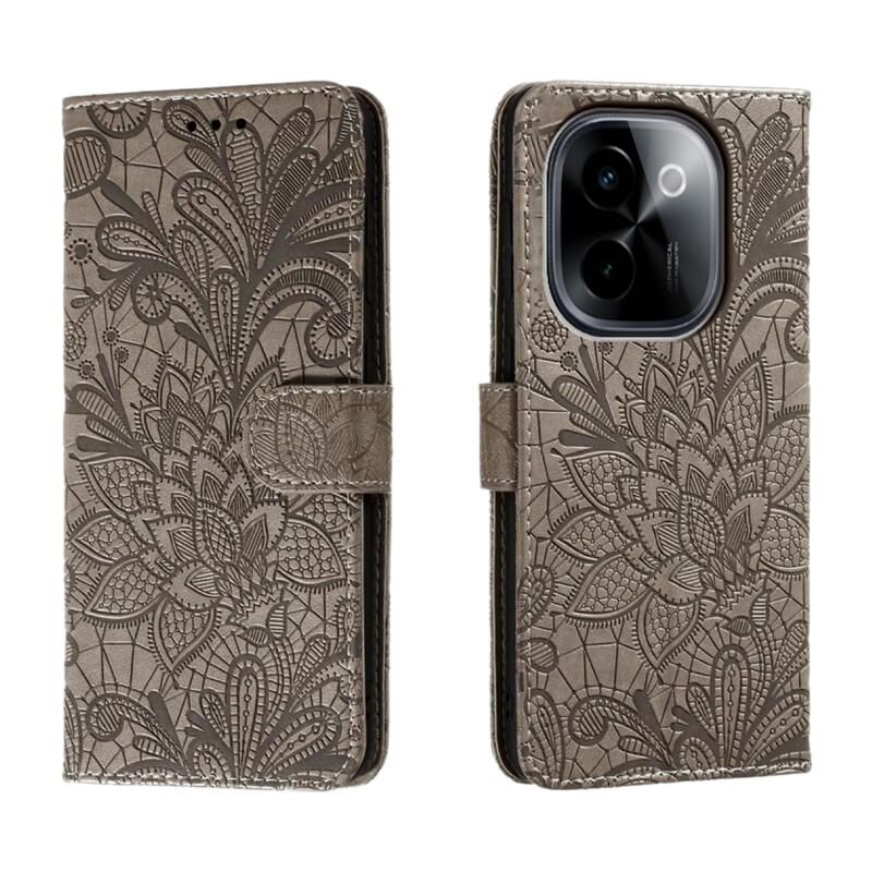 Για το vivo Y200 5G Lace Flower ανάγλυφο Flip δερμάτινη θήκη τηλεφώνου (γκρι)