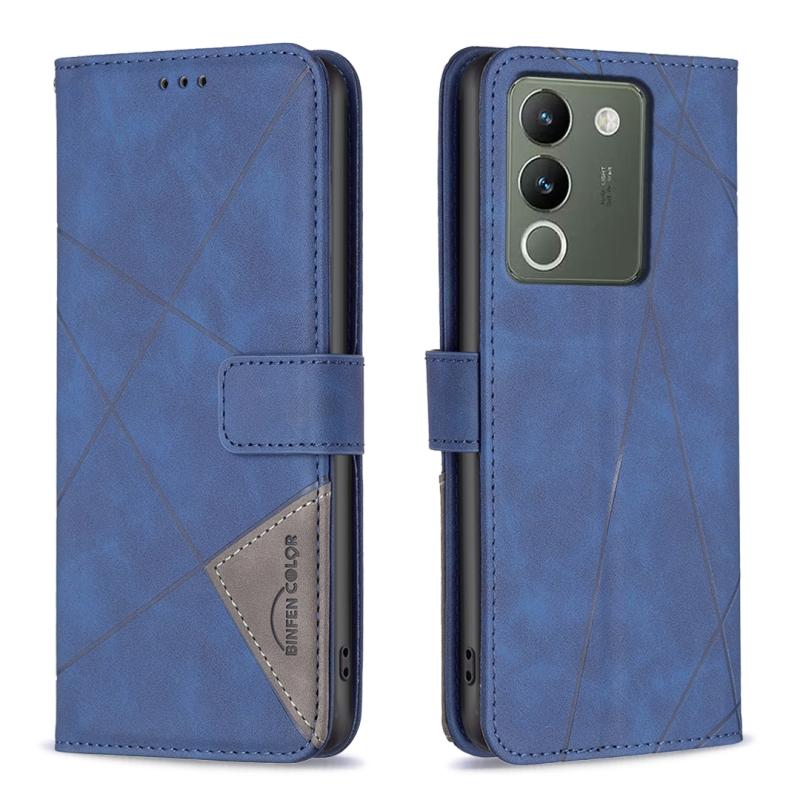 Θήκη τηλεφώνου από δέρμα με υφή ρόμβου και μαγνητικό κούμπωμα για vivo Y200 5G (Μαύρο)