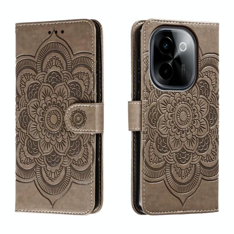 Για vivo Y200 5G Sun Mandala ανάγλυφο μοτίβο τηλέφωνο δερμάτινη θήκη (γκρι)