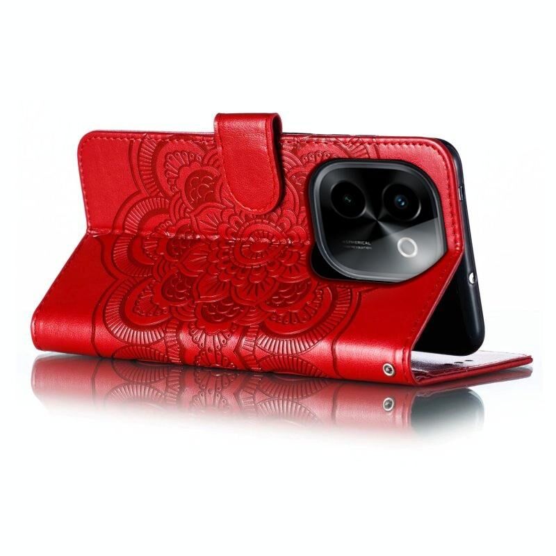 Για vivo Y200 5G Sun Mandala ανάγλυφο μοτίβο τηλέφωνο δερμάτινη θήκη (κόκκινο)