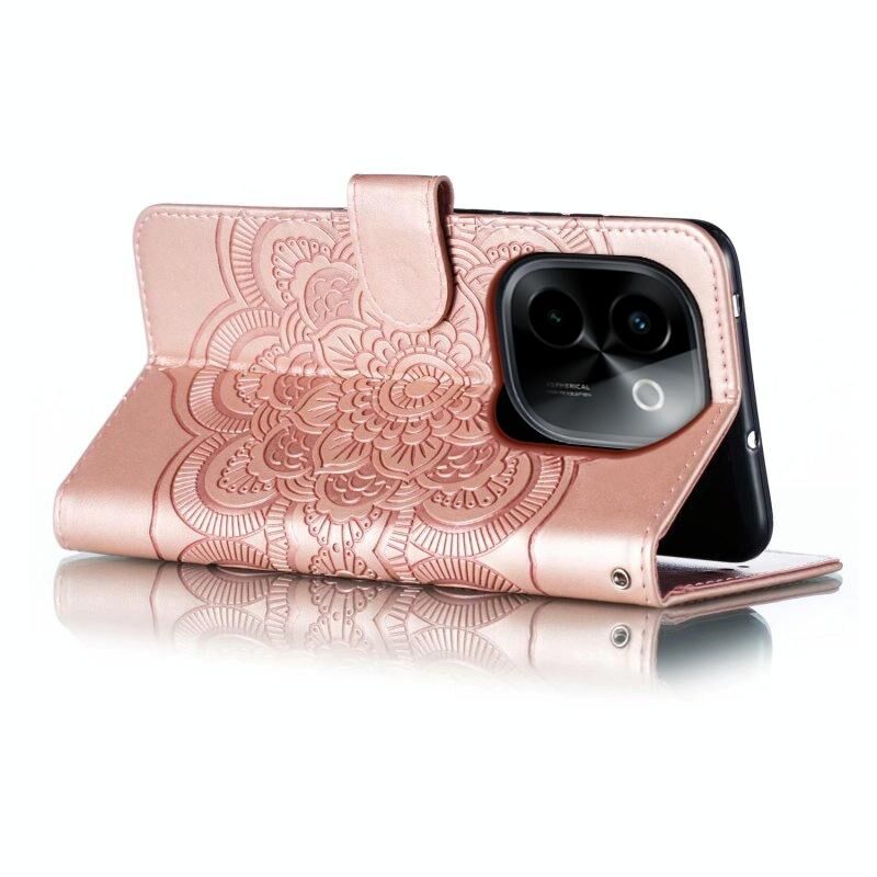 Για vivo Y200 5G Sun Mandala ανάγλυφο μοτίβο τηλέφωνο δερμάτινη θήκη (Rose Gold)