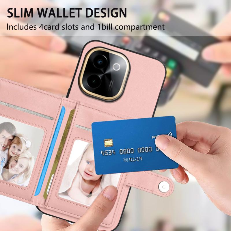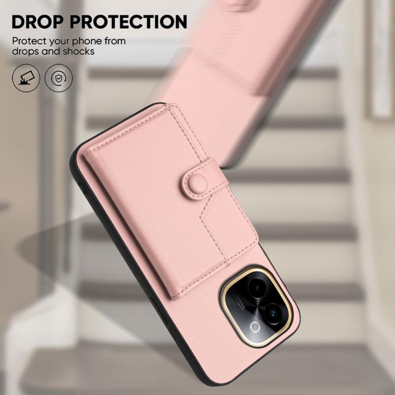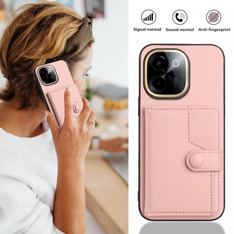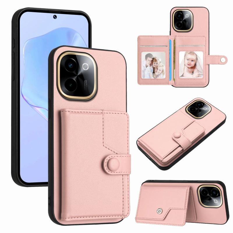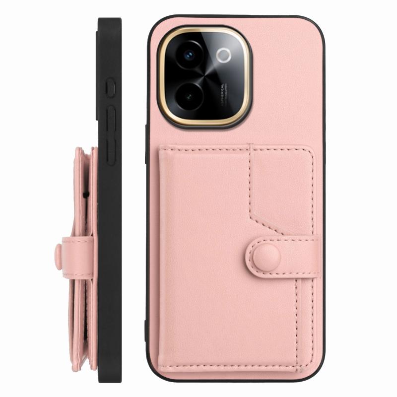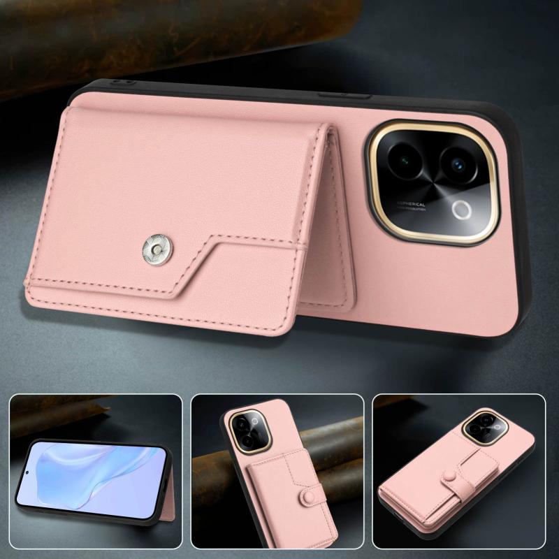 For vivo Y200 Button Card Bag RFID Anti-theft Phone Case(Pink)