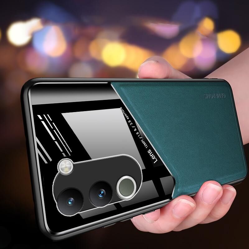 Για το vivo Y200 Global All-inclusive Leather Organic Glass Phone Case (Μαύρο)
