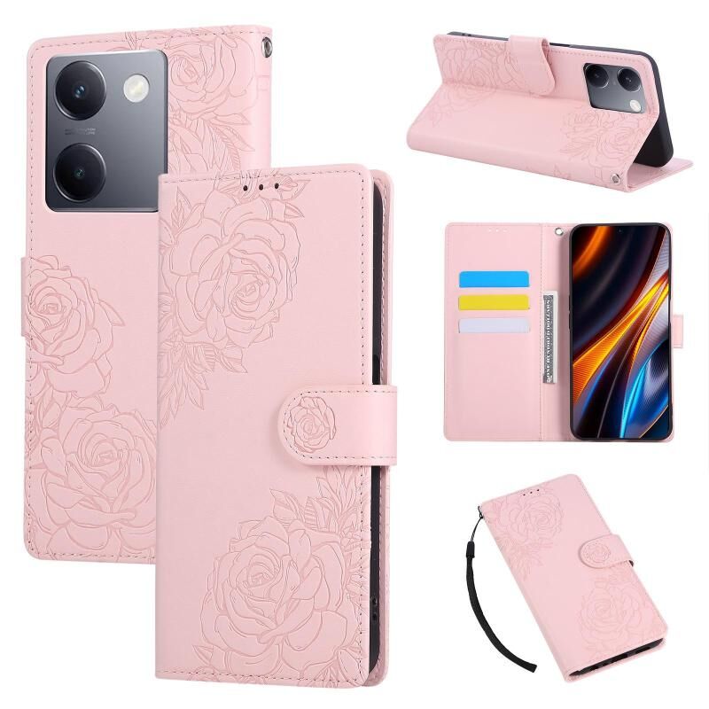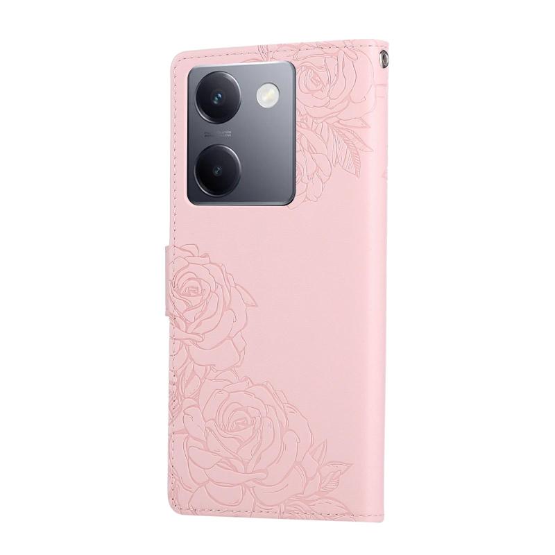 For vivo Y200 Pro 5G Rose Flower Embossed 3-Card Slots Leather Phone Case(Pink)