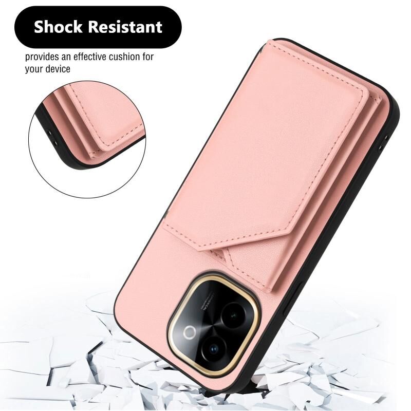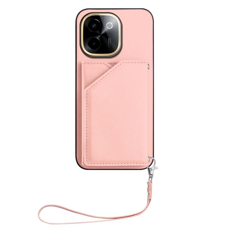 Θήκη τηλεφώνου για vivo Y200 με αίσθηση δέρματος, τέσσερις θήκες για κάρτες και λουρί καρπού (ρόζ)