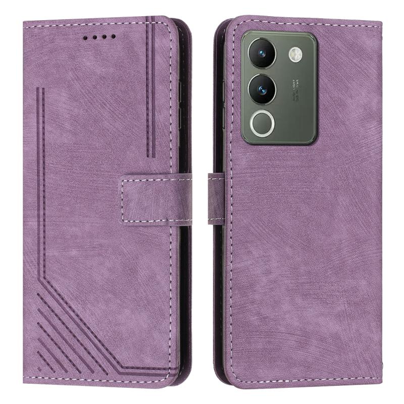 For vivo Y200 Skin Feel Stripe Pattern Leather Phone Case with Lanyard(Purple)