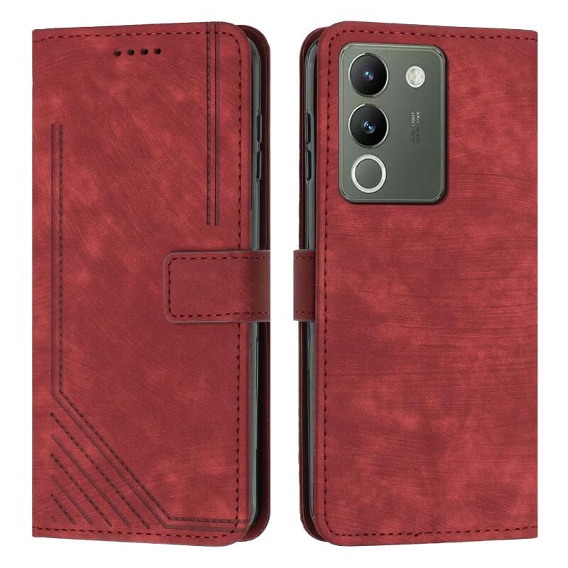 Θήκη τηλεφώνου από δέρμα με υφή και ραβδωτό σχέδιο για vivo Y200 με κορδόνι (Κόκκινο)