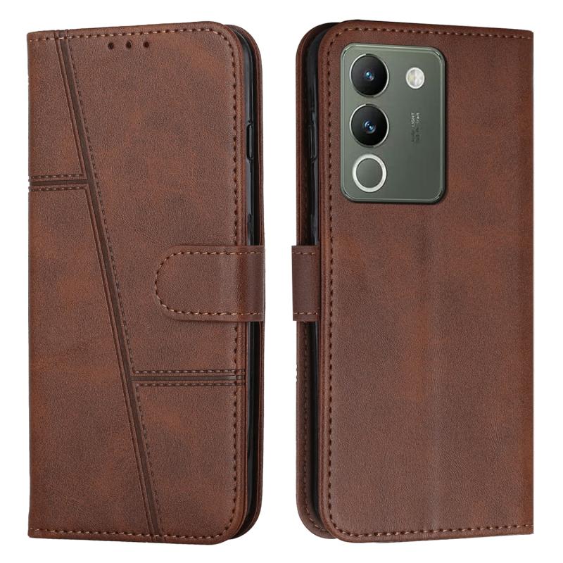 For vivo Y200 Stitching Calf Texture Buckle Leather Phone Case(Brown)