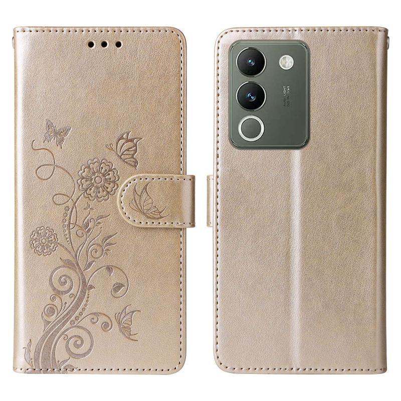 For vivo Y200 / V29E Embossed Butterfly Flowers Leather Phone Case(Gold)