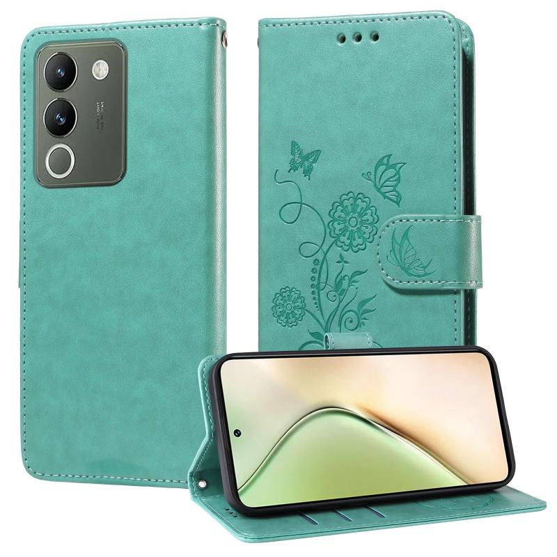 For vivo Y200 / V29E Embossed Butterfly Flowers Leather Phone Case(Green)