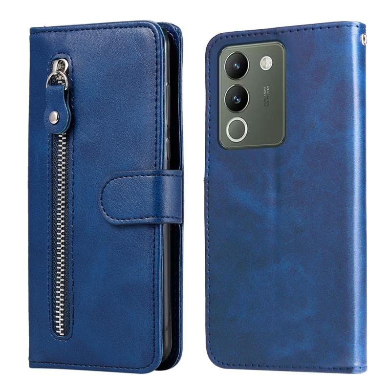 Θήκη τηλεφώνου από δέρμα με υφή μοσχαριού και φερμουάρ για vivo Y200 / V29e (Χρυσό ροζ)
