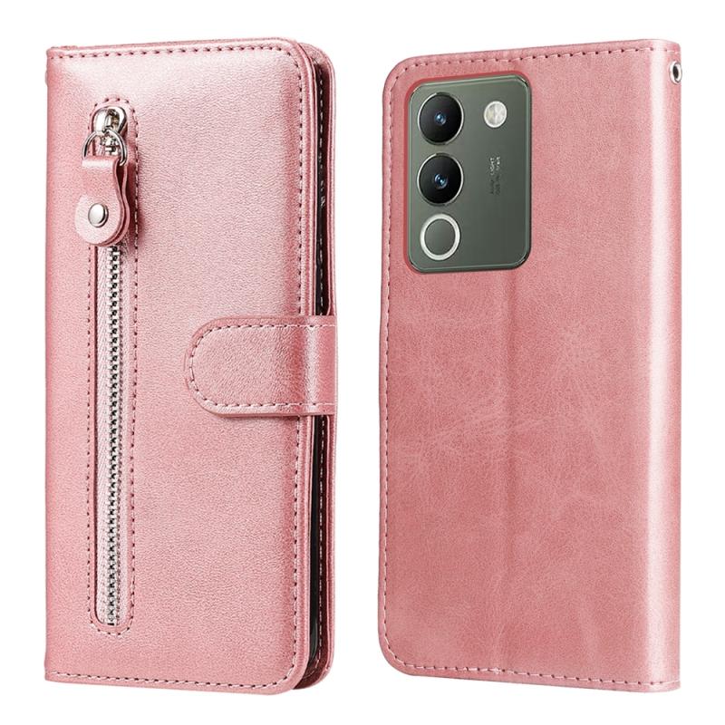 For vivo Y200 / V29e Global Fashion Calf Texture Zipper Leather Phone Case(Rose Gold)