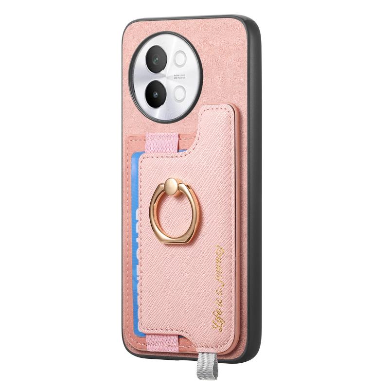 For vivo Y200 / V29e Retro Magsafe Cross Leather Ring Holder Card Bag Phone Case(Pink)