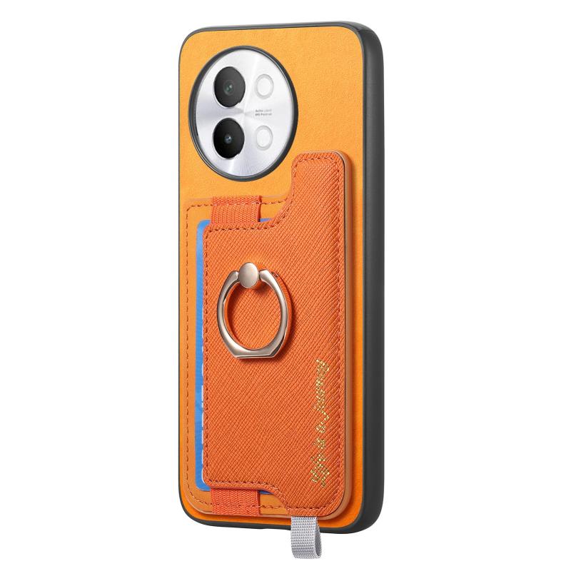 For vivo Y200 / V29e Retro Magsafe Cross Leather Ring Holder Card Bag Phone Case(Yellow)