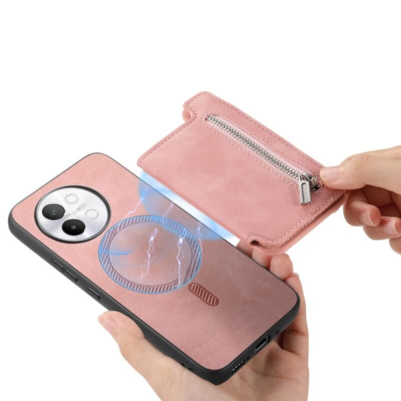 Θήκη τηλεφώνου με μαγνητική σύνδεση MagSafe και θήκη κάρτας με φερμουάρ για vivo Y200 / V29e (Κίτρινο)