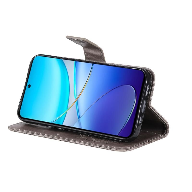 Για το vivo Y200e 5G Global / V30 Lite Ινδία ανάγλυφο ηλιοτρόπιο μοτίβο Flip δέρμα τηλέφωνο υπόθεση (γκρι)