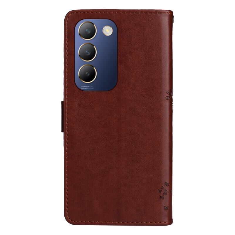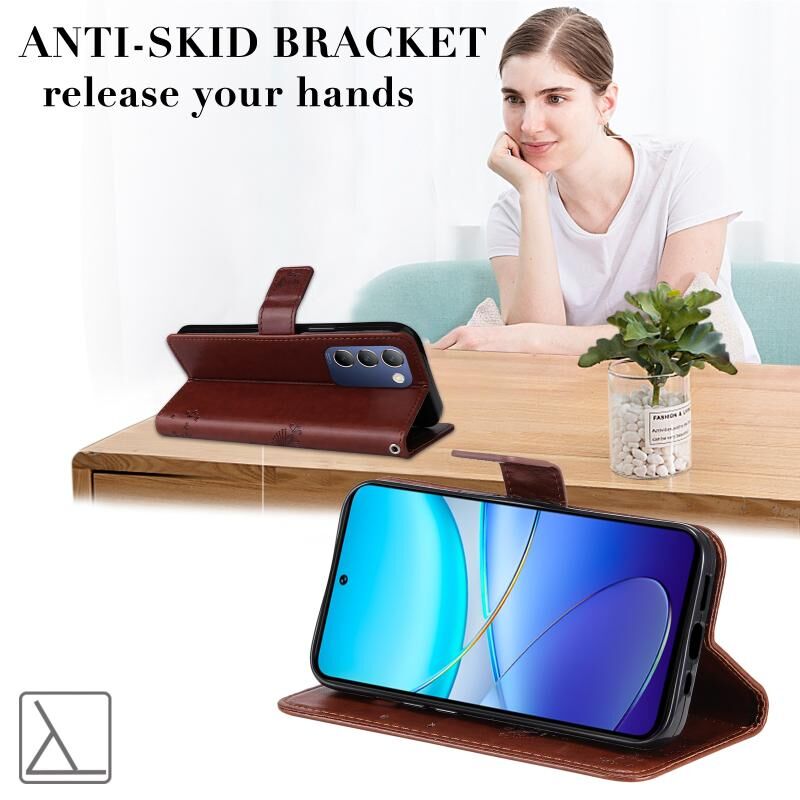 Για vivo Y200e 5G Global / V30 Lite Ινδία Δέντρο & Cat ανάγλυφο μοτίβο Flip δέρμα τηλέφωνο υπόθεση (Καφέ)