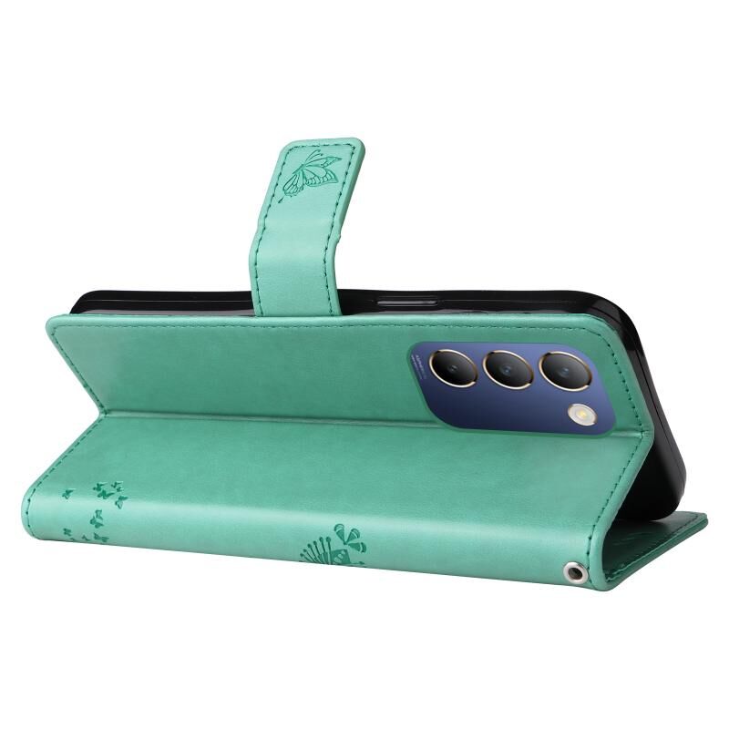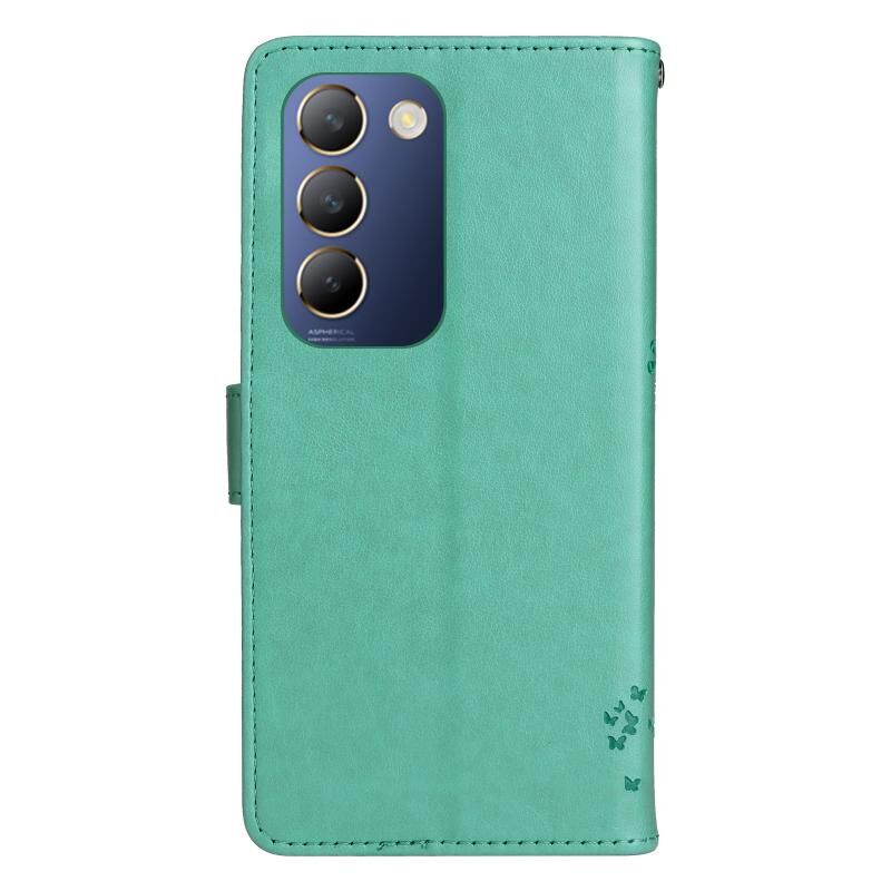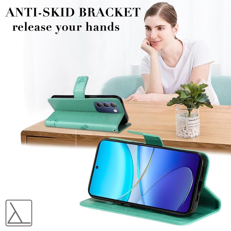 Για το vivo Y200e 5G Global / V30 Lite Ινδία Δέντρο & Cat ανάγλυφο μοτίβο Flip δερμάτινη θήκη τηλεφώνου (πράσινο)