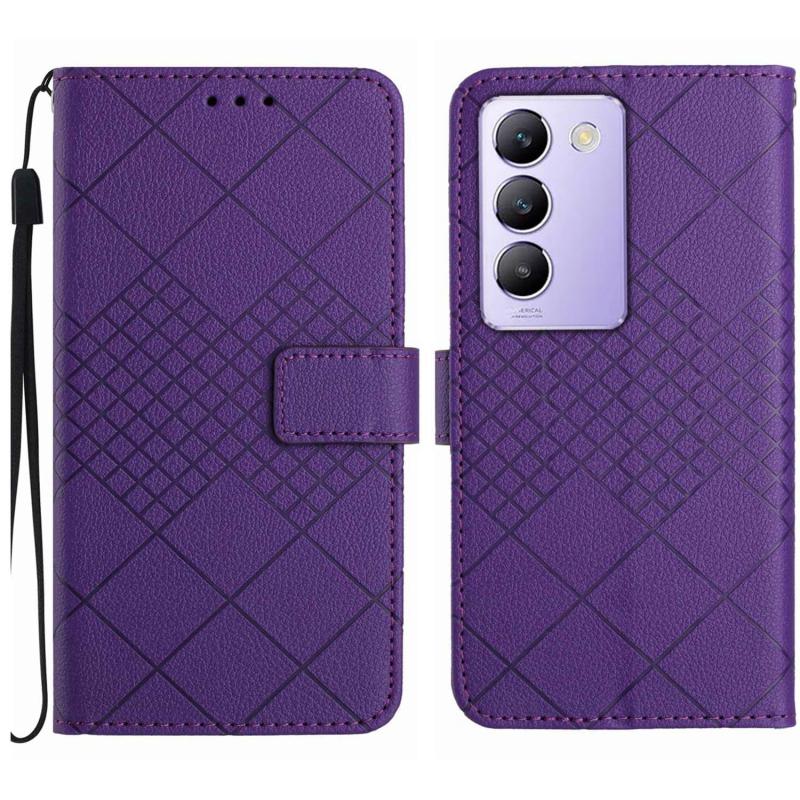 For vivo Y200e 5G/Y100 5G IDN/V30 Lite 5G India Rhombic Grid Texture Leather Phone Case(Purple)