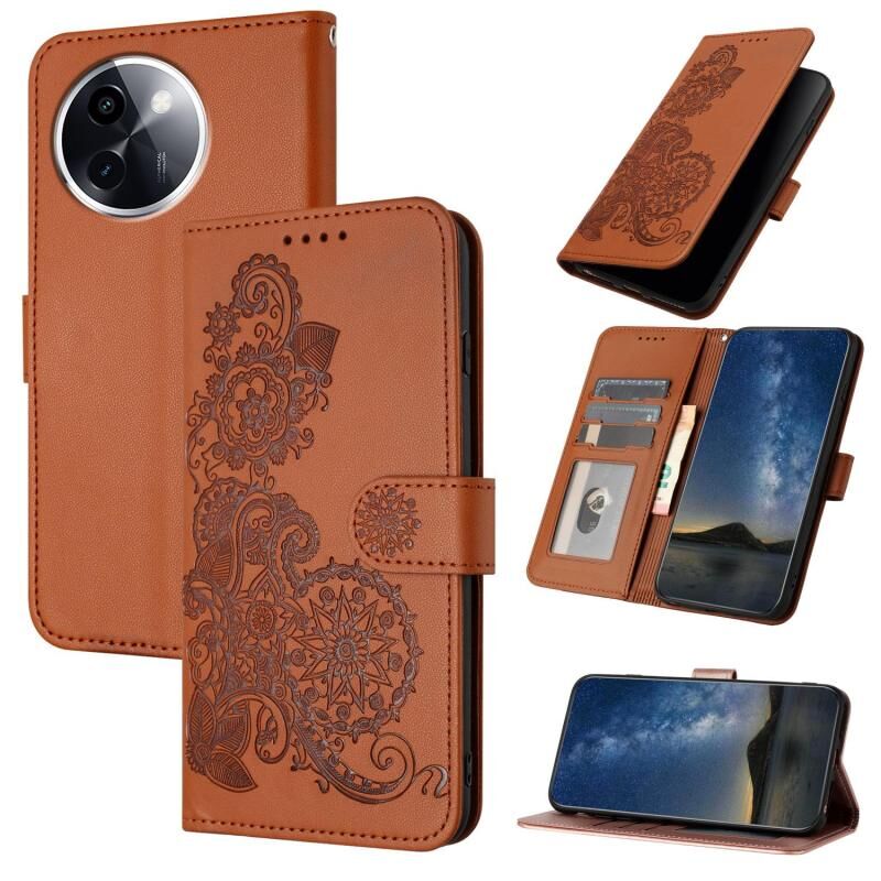 Θήκη τηλεφώνου από δέρμα με ανάγλυφο σχέδιο λουλουδιού Datura για vivo Y200i (Μπλε)