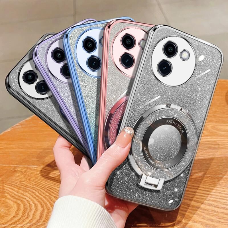 Θήκη τηλεφώνου TPU με στρογγυλό στήριγμα, γυαλιστερό ντεγκραντέ με επιμετάλλωση για vivo Y200i / T3X 5G (Ροζ)