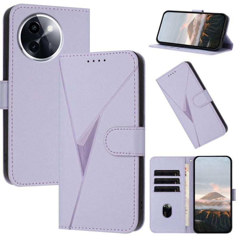 Για vivo Y200i Τρίγωνο μοτίβο αγκράφα κούμπωμα δερμάτινη θήκη τηλεφώνου (Light Purple)