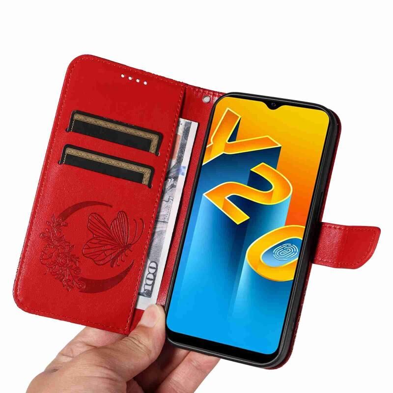 Θήκη τηλεφώνου από δέρμα με ανάγλυφο σχέδιο πεταλούδας Swallowtail για vivo Y20s G / Y11s / Y12a / Y12s (Μπλε)