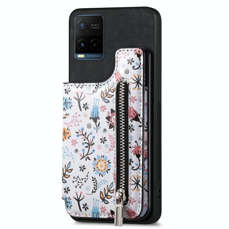 Για vivo Y21 2021 Ρετρό ζωγραφισμένο φερμουάρ πορτοφόλι πίσω υπόθεση τηλεφώνου (μαύρο)