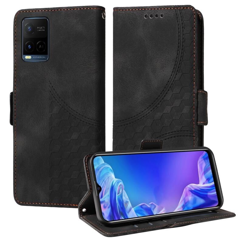 Θήκη τηλεφώνου από δέρμα με ανάγλυφο ρόμβο και αστρικό σχέδιο για vivo Y21 2021 / Y21s (Πράσινο)