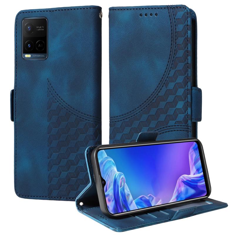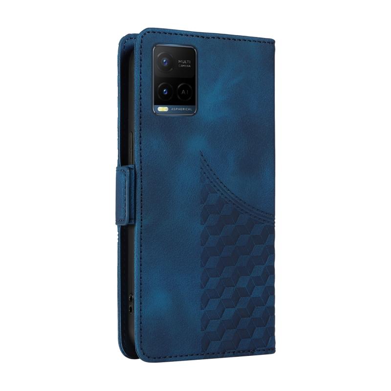 For vivo Y21 2021 / Y21s Embossed Rhombus Starry Leather Phone Case(Blue)