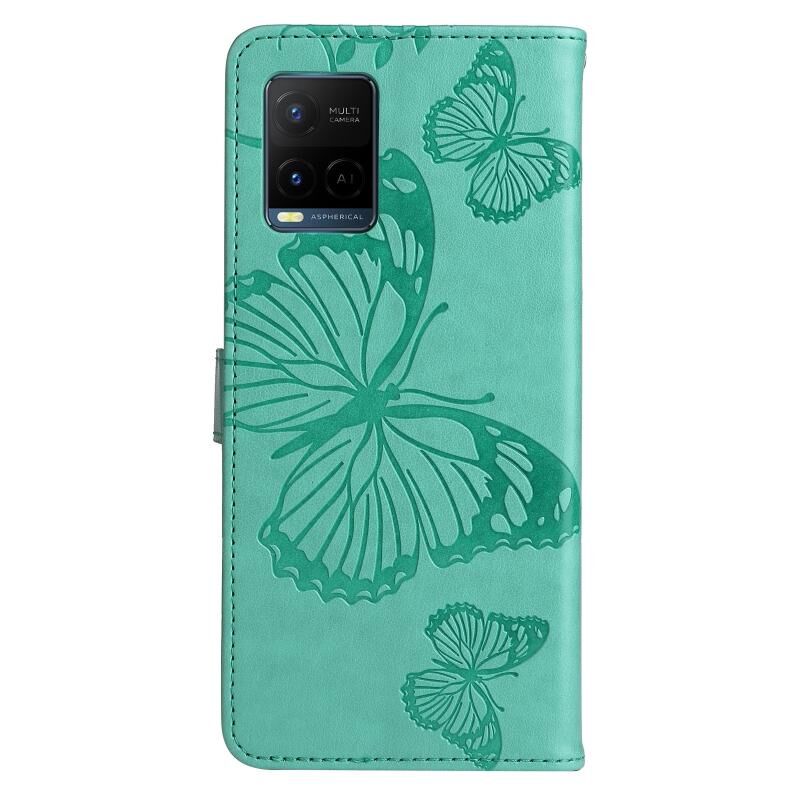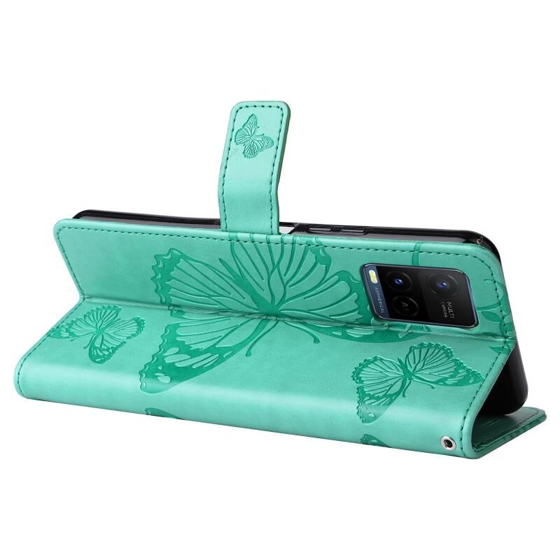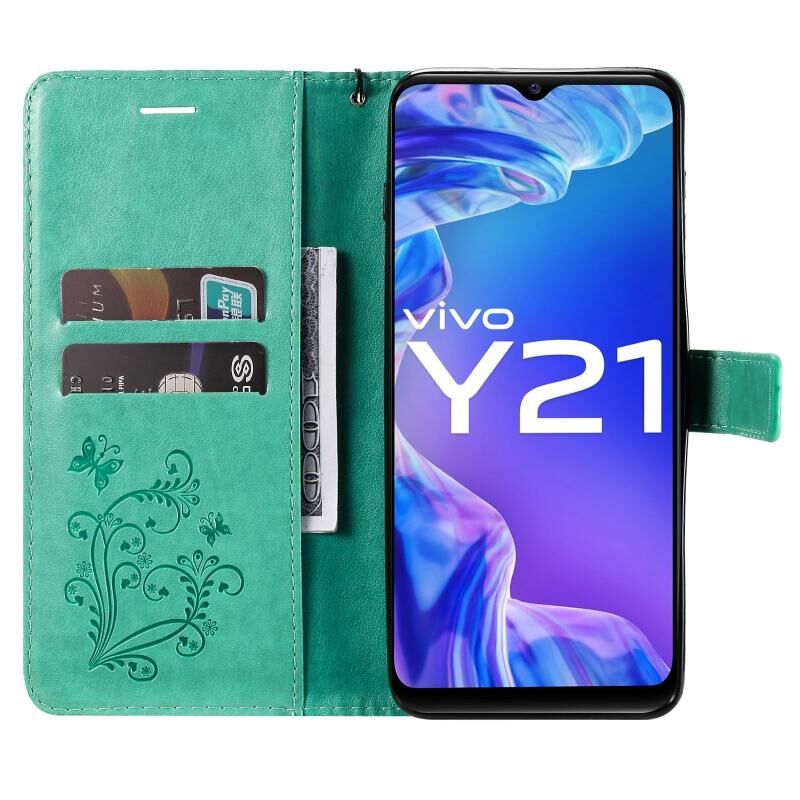 Για vivo Y21 2021 / Y21s / Y33s Πιεσμένη εκτύπωση πεταλούδα μοτίβο οριζόντια Flip PU δέρμα υπόθεση με κάτοχο & υποδοχές για κάρτες & πορτοφόλι & κορδόνι (πράσινο)