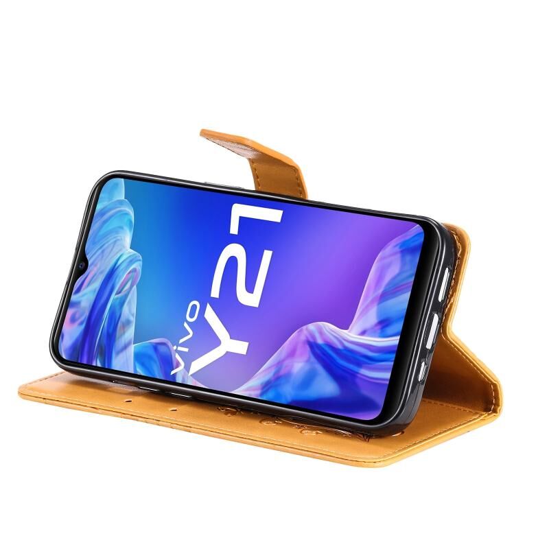 Για vivo Y21 2021 / Y21s / Y33s Πιεσμένη εκτύπωση μοτίβο πεταλούδας οριζόντια Flip PU δέρμα υπόθεση με κάτοχο & υποδοχές για κάρτες & πορτοφόλι & κορδόνι (κίτρινο)