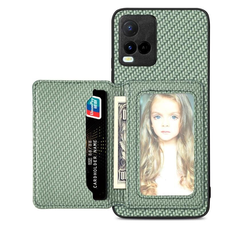 Για vivo Y21 Carbon Fiber μαγνητική κάρτα τσάντα υπόθεση τηλεφώνου (Πράσινο)