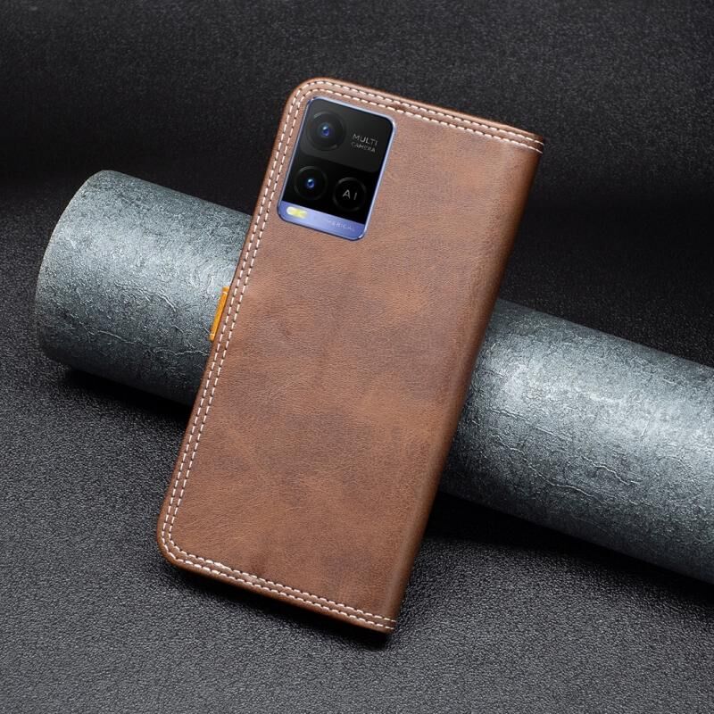 Θήκη τηλεφώνου δερμάτινη διπλής ραφής, χρωματικά ταιριαστή για vivo Y21 (Μαύρο)