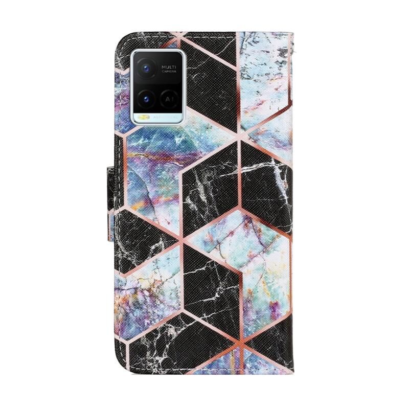 Θήκη τηλεφώνου δερμάτινη με σχέδιο πολύχρωμης ζωγραφικής για vivo Y21 (Μαύρο Μάρμαρο)