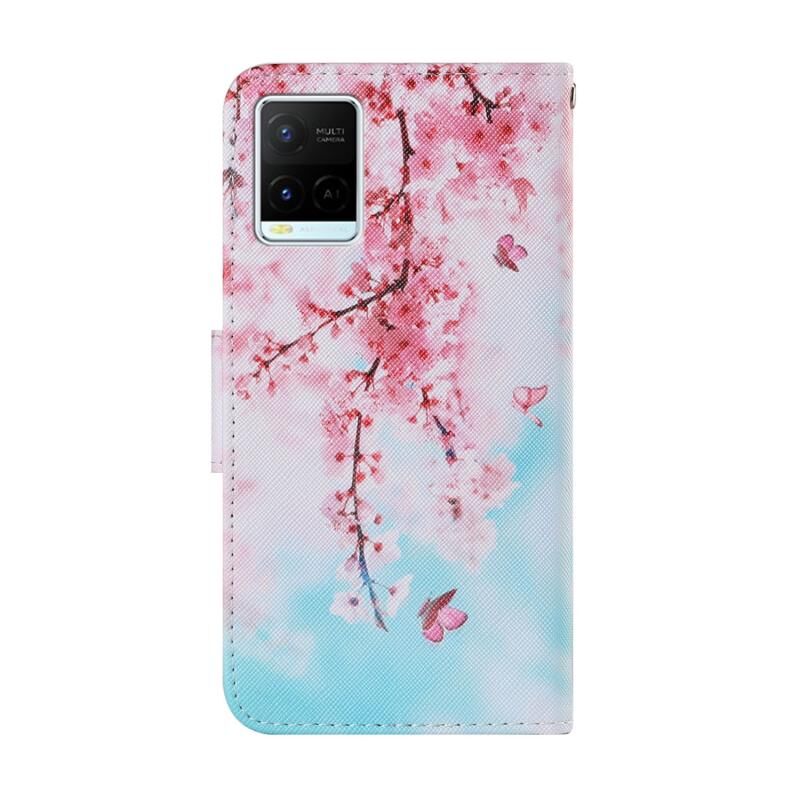 Θήκη τηλεφώνου από δέρμα με έγχρωμο σχέδιο για vivo Y21 (Ανθίσματα Κερασιάς)