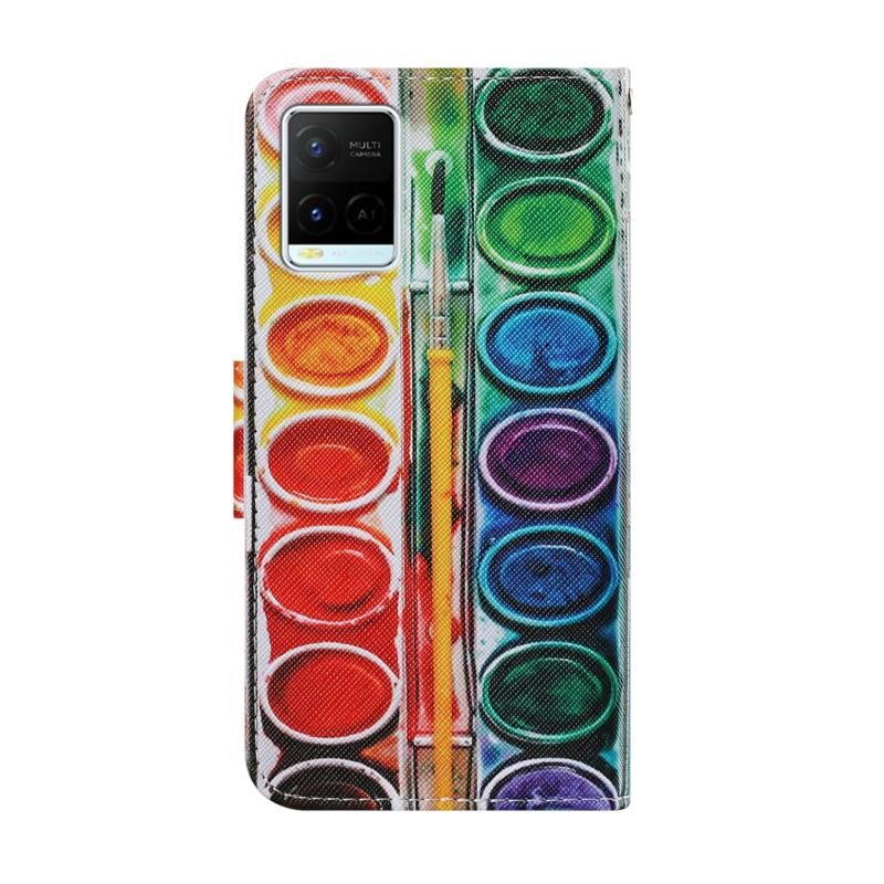 Θήκη τηλεφώνου από δέρμα με πολύχρωμο σχέδιο για vivo Y21 (Κόκκινο)